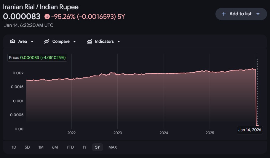 इसका मतलब हुआ कि 5 साल में भारतीय रुपये की तुलना में ईरानियन रियाल की कीमत 20 गुना से भी ज्यादा कम हो गई है।