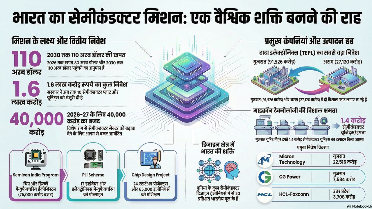 डिजिटल दुनिया में आर्टिफिशियल इंटेलिजेंस (AI) का बोलबाला बढ़ता जा रहा है। इलेक्ट्रॉनिक कार, कंप्यूटर और नए जमाने के अन्य गैजेट्स में इस्तेमाल होने वाले सेमीकंडक्टर के मामले में खुद को आत्मनिर्भर बनाने के लिए भाकत ने यह मिशन साल 2021 में शुरू किया था। 5 साल में अरबों रुपये खर्च किए जा चुके हैं ताकि इस क्षेत्र में भारत अगुवा बन सके। पिछले साल 15 अगस्त के मौके पर प्रधानमंत्री नरेंद्र मोदी ने कहा था कि 2026 तक भारत में 80 अरब डॉलर के सेमीकंडक्टर की खपत होने लगेगी और 2030 तक यह आंकड़ा 110 अरब डॉलर तक पहुंच जाएगा। भारत 1.6 लाख करोड़ रुपये के निवेश की योजना है और कई कंपनियां अपना काम शुरू भी कर चुकी हैं।
