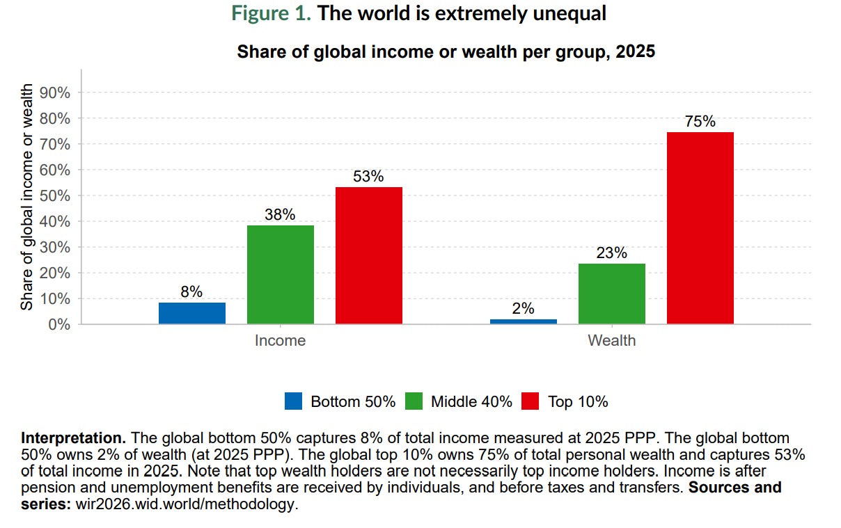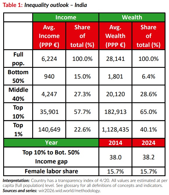 2026 की 'वर्ल्ड इनइक्वैलेटी रिपोर्ट' बताती है कि दुनिया में सबसे ज्यादा असमानता भारत में ही बनी हुई है।