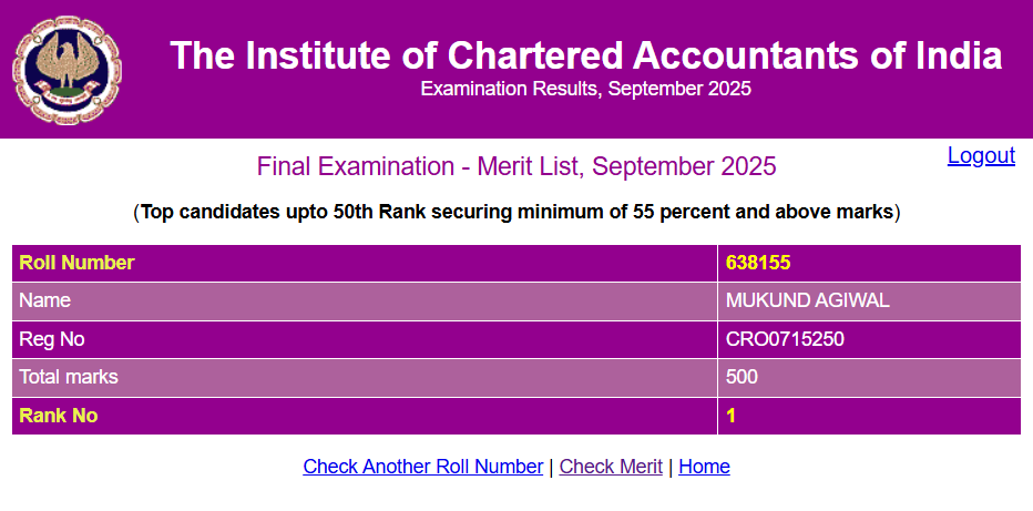इंस्टीट्यूट ऑफ चार्टर्ड अकाउंटेंट्स ऑफ इंडिया (ICAI) ने सितंबर सेशन के चार्टर्ड अकाउंटेंट (CA) फाउंडेशन, इंटरमीडिएट और फाइनल परीक्षाओं के रिजल्ट घोषित कर दिया है। CA फाइनल में मुकुंद आगीवाल पहले, तेजस मुंदड़ा दूसरे और बकुल गुप्ता तीसरे टॉपर रहे। फाउंडेशन परीक्षा में एल.राजलक्ष्मी, इंटरमीडिएट में नेहा खानवानी टॉपर रही। CA टॉपर मुकुंद और तेजस ने अपनी जर्नी शेयर की है। उन्होंने बताया कि उन्होंने पढ़ाई के साथ-साथ वर्क-आउट को भी मैनेज किया। उन्होंने यह भी बताया कि ICAI का नया AI टूल उनके लिए बहुत मददगार रहा।