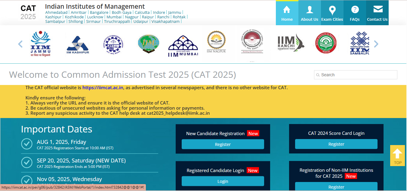 CAT 2025 के लिए आधिकारिक वेबसाइट iimcat.ac.in पर जाना होगा