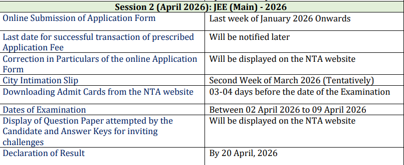 नेशनल टेस्टिंग एजेंसी के अनुसार, JEE Main 2026 सेशन 1 का रिजल्ट आज किसी भी समय जारी हो सकता है। अगर इस रिजल्ट में आपका स्कोर अच्छा नहीं है तो आपके पास एक दूसरा मौका भी है।