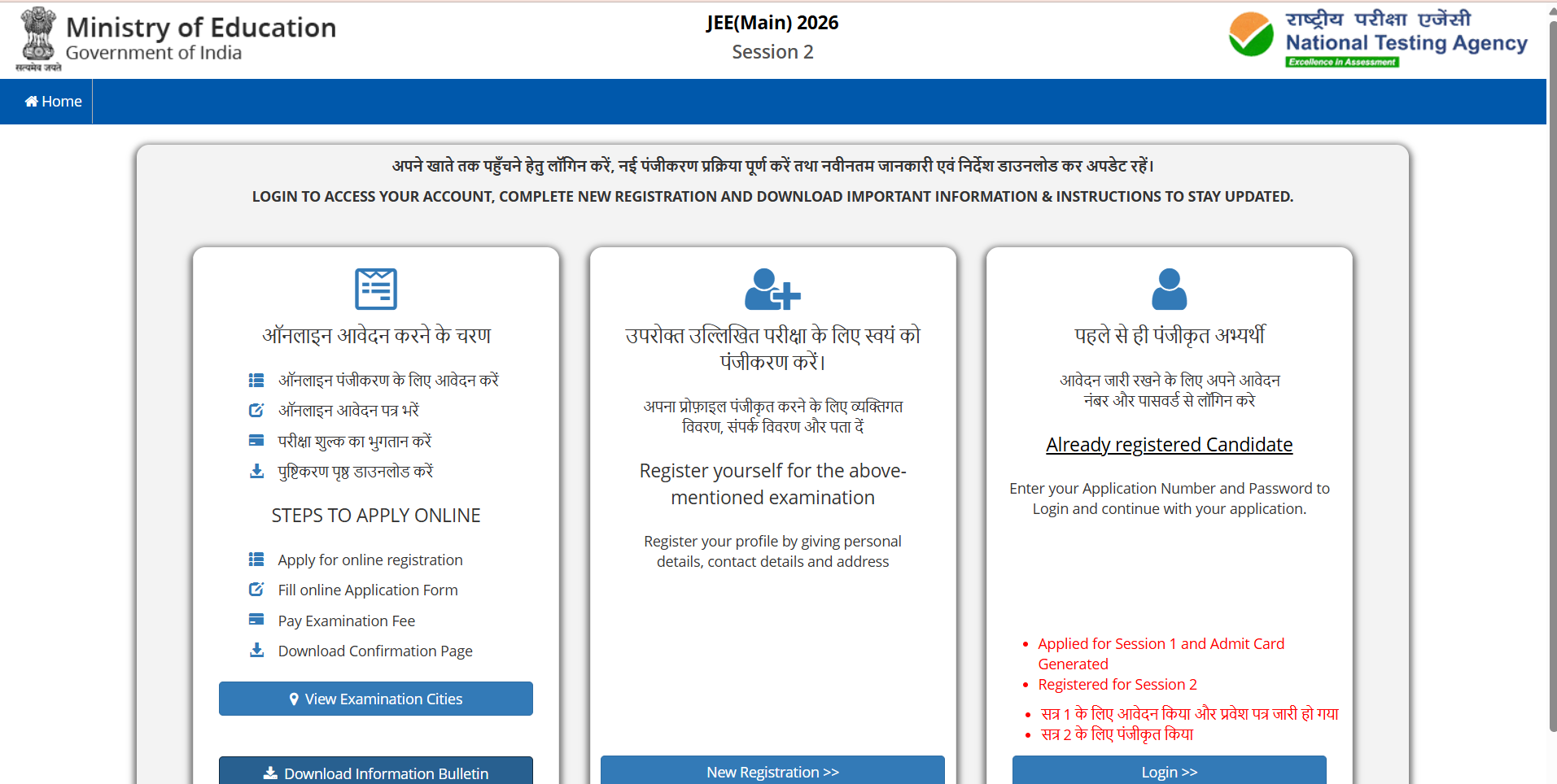 JEE Main 2026 सेशन 2 रजिस्ट्रेशन फॉर्म