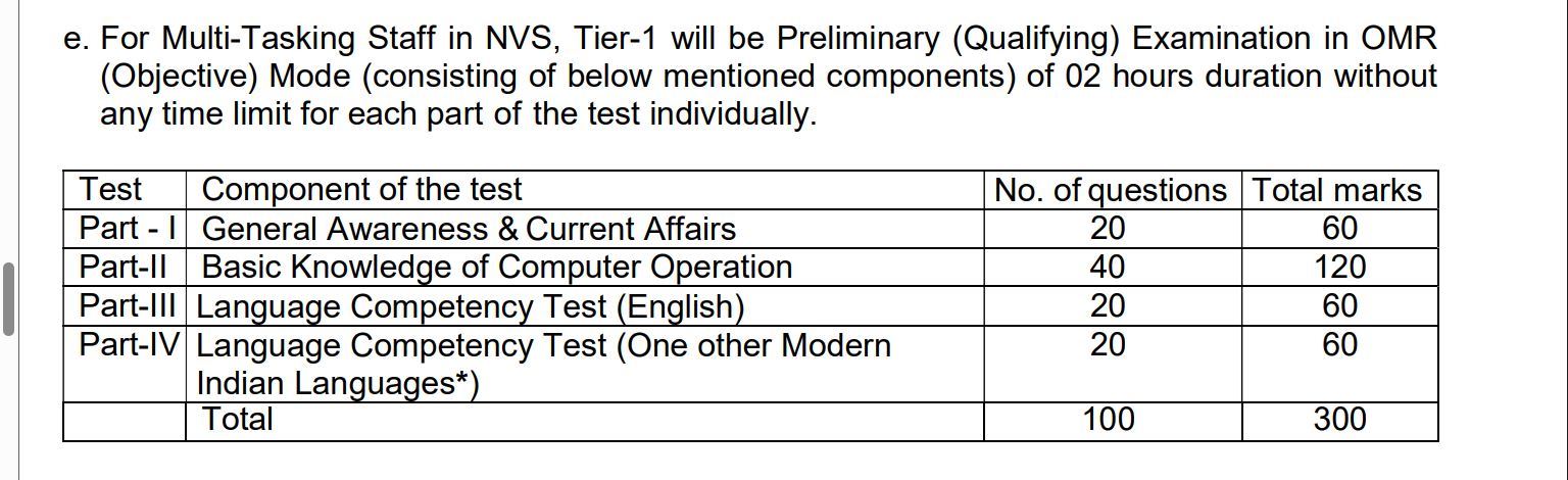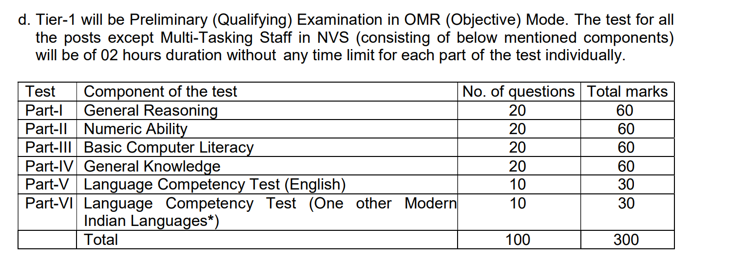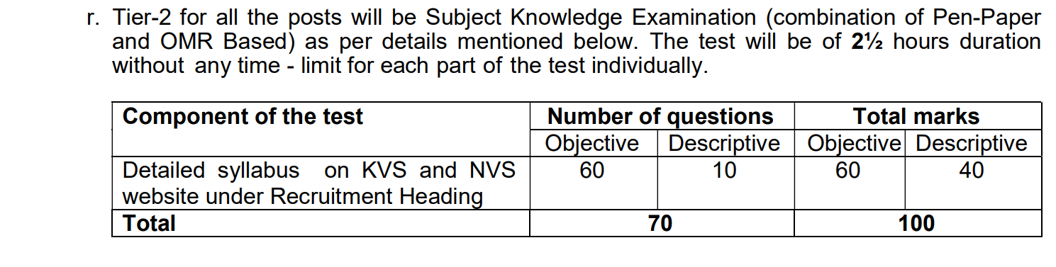 KVS में असिस्टेंट सेक्शन ऑफिसर और सीनियर सेक्ट्रिएट असिस्टेंट और NVS में लैब अटेंडेंट और मल्टी टास्किंग स्टाफ की भर्ती में ना तो स्किल टेस्ट होगा और ना ही इंटरव्यू। इन पदों पर टियर-2 परीक्षा के आधार पर ही अंतिम मेरिट लिस्ट बनेगी।