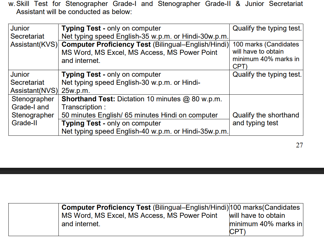 इसके अलावा दो टियर परीक्षाओं के साथ-साथ कुछ पदों के लिए स्किल टेस्ट भी होगा। नोटिफिकेशन के अनुसार, स्टेनोग्राफर, जूनियर असिस्टेंट के पदों के लिए स्किल टेस्ट जरूरी होगा।