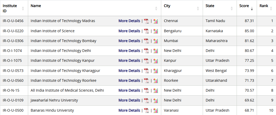यह भी पढ़ें-- NIRF रैंकिंग में टॉप पर IIT मद्रास, JNU को कौन सा स्थान मिला?