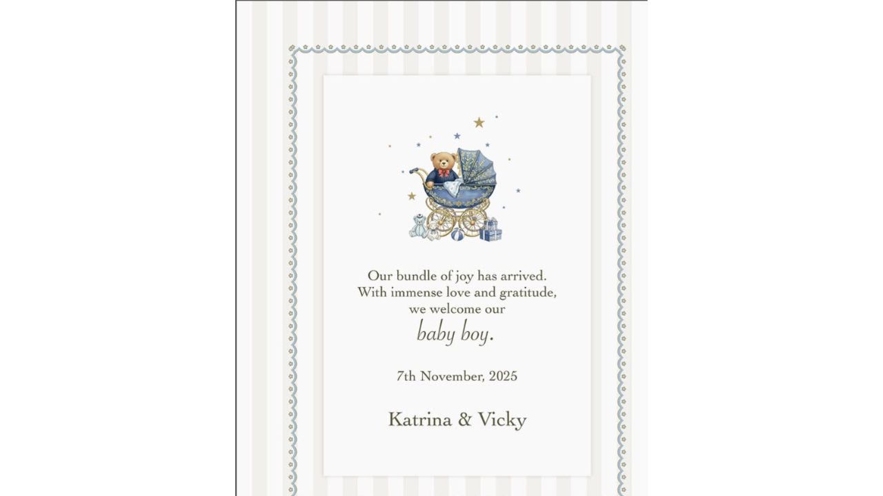 कपल ने हाल ही में इंस्टाग्राम पर पोस्ट शेयर करके जानकारी दी है। कपल ने पोस्ट में लिखा, ब्लेस्ड ओम। हमारी खुशियां डबल हो गई है। ढेर सारे प्यार और आशीर्वाद के साथ हमने बेबी बॉय का वेलकम किया है। 7 नवंबर 2025। कैटरीना और विक्की।