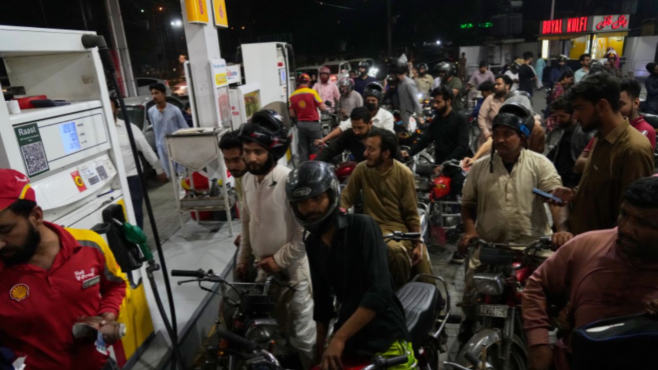 पाकिस्तान में तेल के लिए लंबी कतारें लगी हैं। Photo Credit: PTI