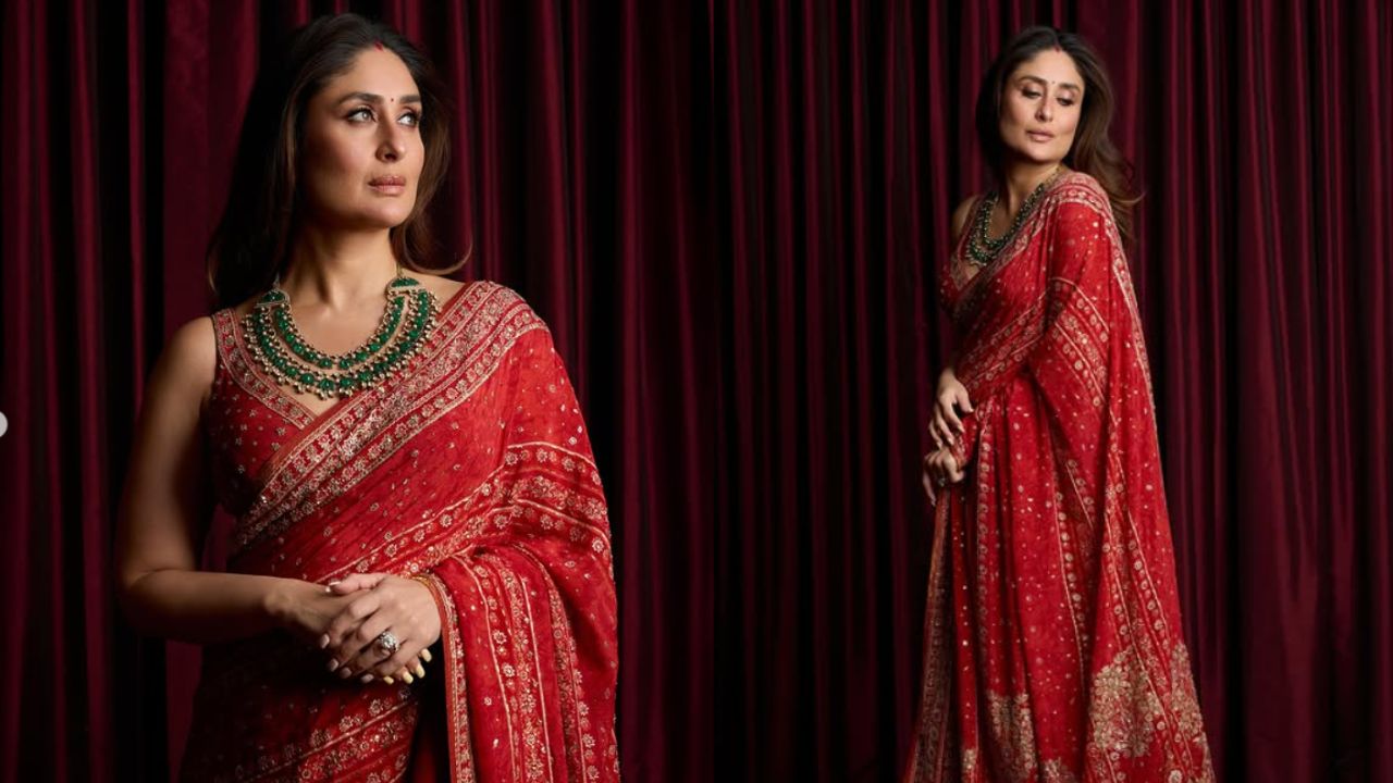 करीना कपूर लाल रंग की साड़ी में बला की खूबसूरत लग रही हैं। उन्होंने अपने लुक को ग्रीन कलर के हैवी नेकलेस के साथ कंप्लीट किया है। बेबो ने अपना मेकअप सिंपल और सटल रखा है। उनका यह लुक काफी अट्रैक्टिव लग रहा है। दिवाली पार्टी में आप इस लुक को आसानी से रीक्रिएट कर सकती हैं।