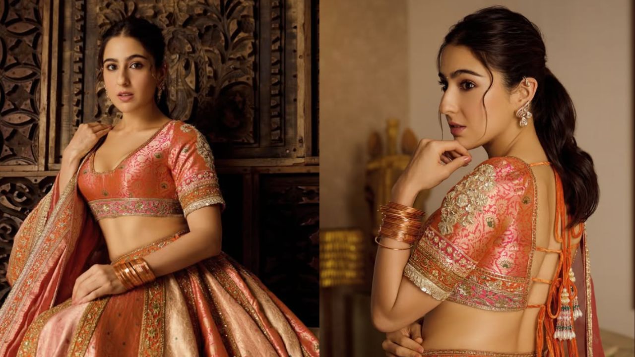 अभिनेत्री सारा अली खान अपने कंफर्टेबल फैशन स्टेंटमेंट के लिए जानी जाती हैं। वह हाल ही में ऑरेंज कलर के खूबसूरत लहंगे में नजर आई थीं। अभिनेत्री ने अपने लुक को सिर्फ एक बिंदी के साथ कंप्लीट किया है। उन्होंने किसी प्रकार की कोई जैवलरी कैरी नहीं की थी।
