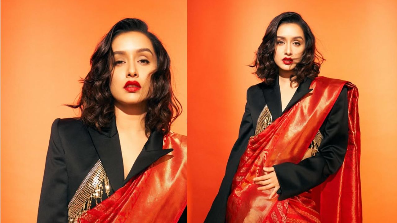 अगर आप इंडो वेस्टर्न आउटफिट पहनना पसंद करती हैं तो श्रद्धा कपूर से फैशन इंस्पीरेशन ले सकती हैं। श्रद्धा ने स्टाइलिश ब्लैक जैकट के साथ रेड कलर की साड़ी को ड्रेप किया है। श्रद्धा ने इस लुक के साथ किसी तरह की कोई एक्सेसरीज कैरी नहीं की है लेकिन बोल्ड मेकअप किया है।