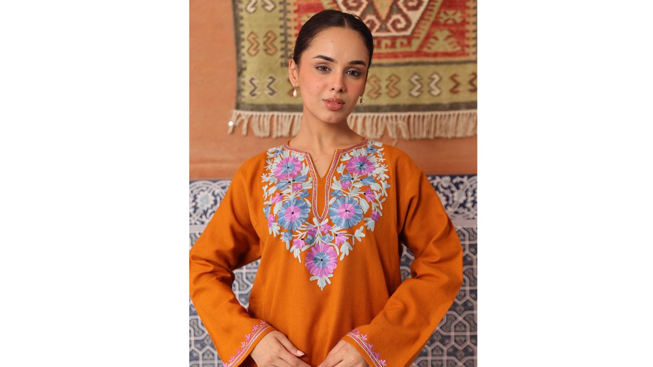अगर आपको कुछ क्लासी और एलिगेंट पहनना है तो कश्मीरी ऊनी फिरन पहनें। यह कुर्ता आपको रॉयल लुक देगा। आप इसे विभिन्न पैटर्न में खरीद सकती हैं।