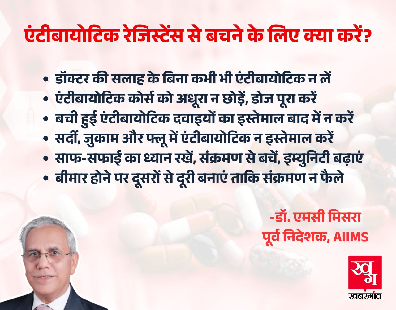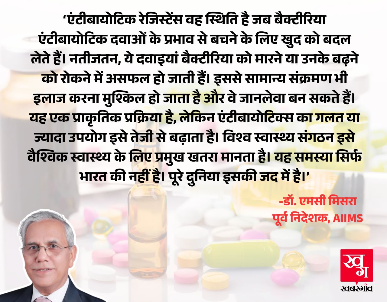 डॉ. एमसी मिसरा ने कहा, 'एंटीबायोटिक रेजिस्टेंस वह स्थिति है जब बैक्टीरिया एंटीबायोटिक दवाओं के प्रभाव से बचने के लिए खुद को बदल लेते हैं। नतीजतन, ये दवाइयां बैक्टीरिया को मारने या उनके बढ़ने को रोकने में असफल हो जाती हैं। इससे सामान्य संक्रमण भी इलाज करना मुश्किल हो जाता है और वे जानलेवा बन सकते हैं। यह एक प्राकृतिक प्रक्रिया है, लेकिन एंटीबायोटिक्स का गलत या ज्यादा उपयोग इसे तेजी से बढ़ाता है।