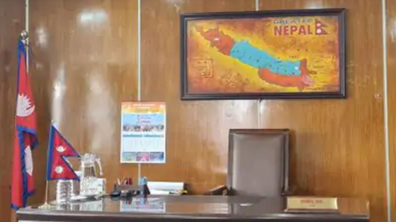 बलेंद्र शाह की दफ्तर में लगा नेपाल का विवादित मैप।