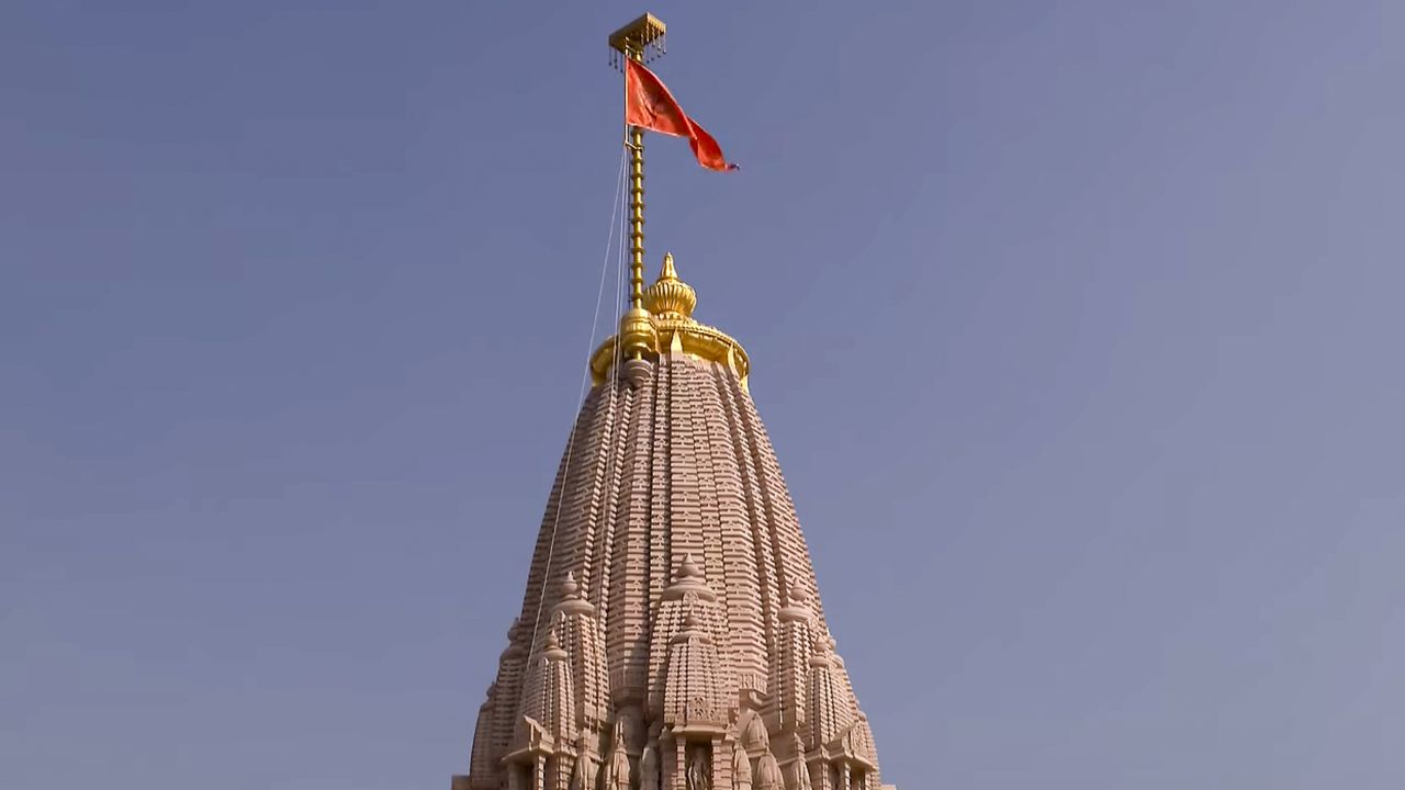 प्रधानमंत्री नरेंद्र मोदी ने मंगलवार को अयोध्या में श्रीराम जन्मभूमि मंदिर के शिखर पर वैदिक मंत्रोच्चार और 'जय श्री राम' के नारों की गूंज के बीच भगवा ध्वज फहराया। इसके साथ ही मंदिर का निर्माण औपचारिक रूप से पूरा हो गया है।