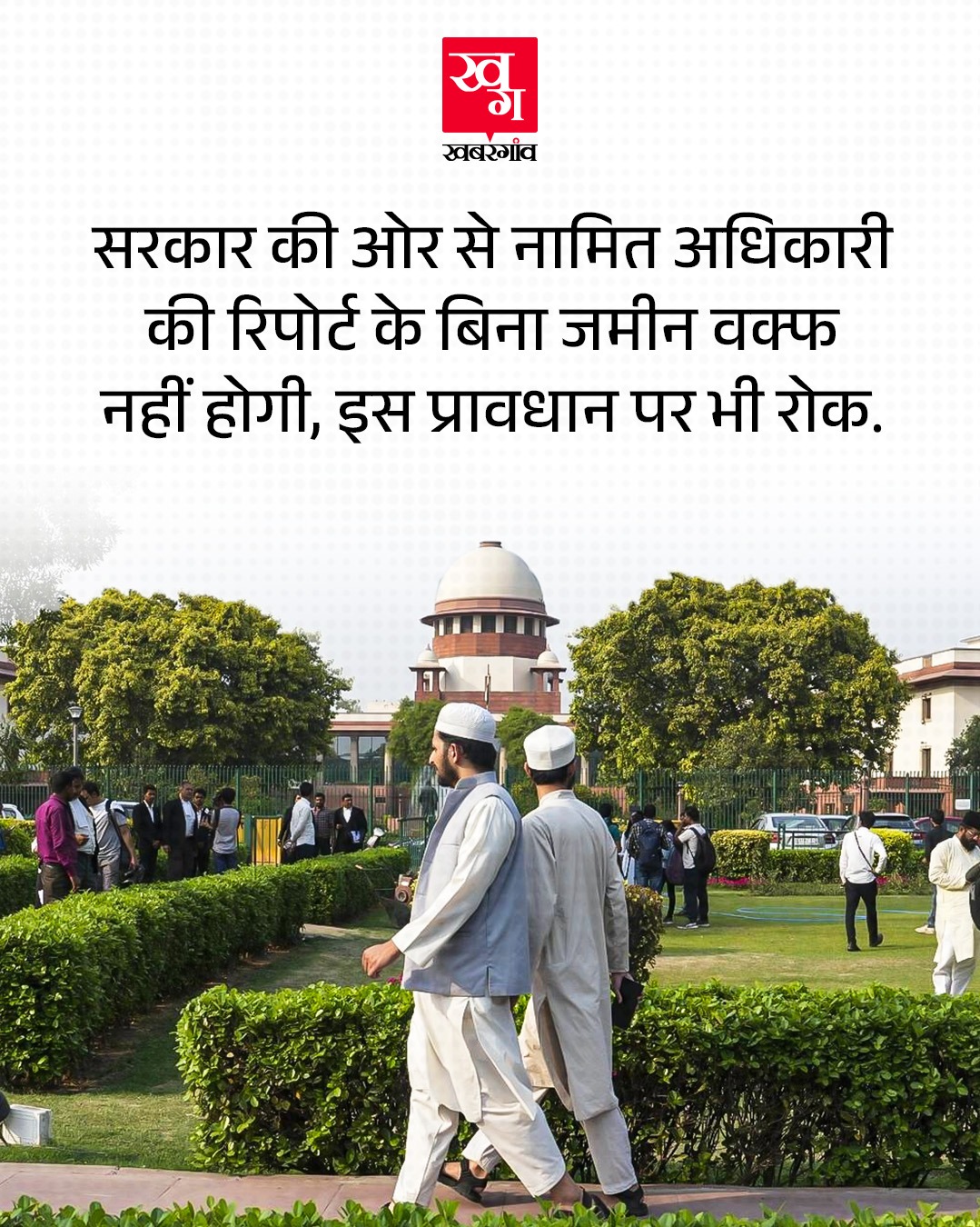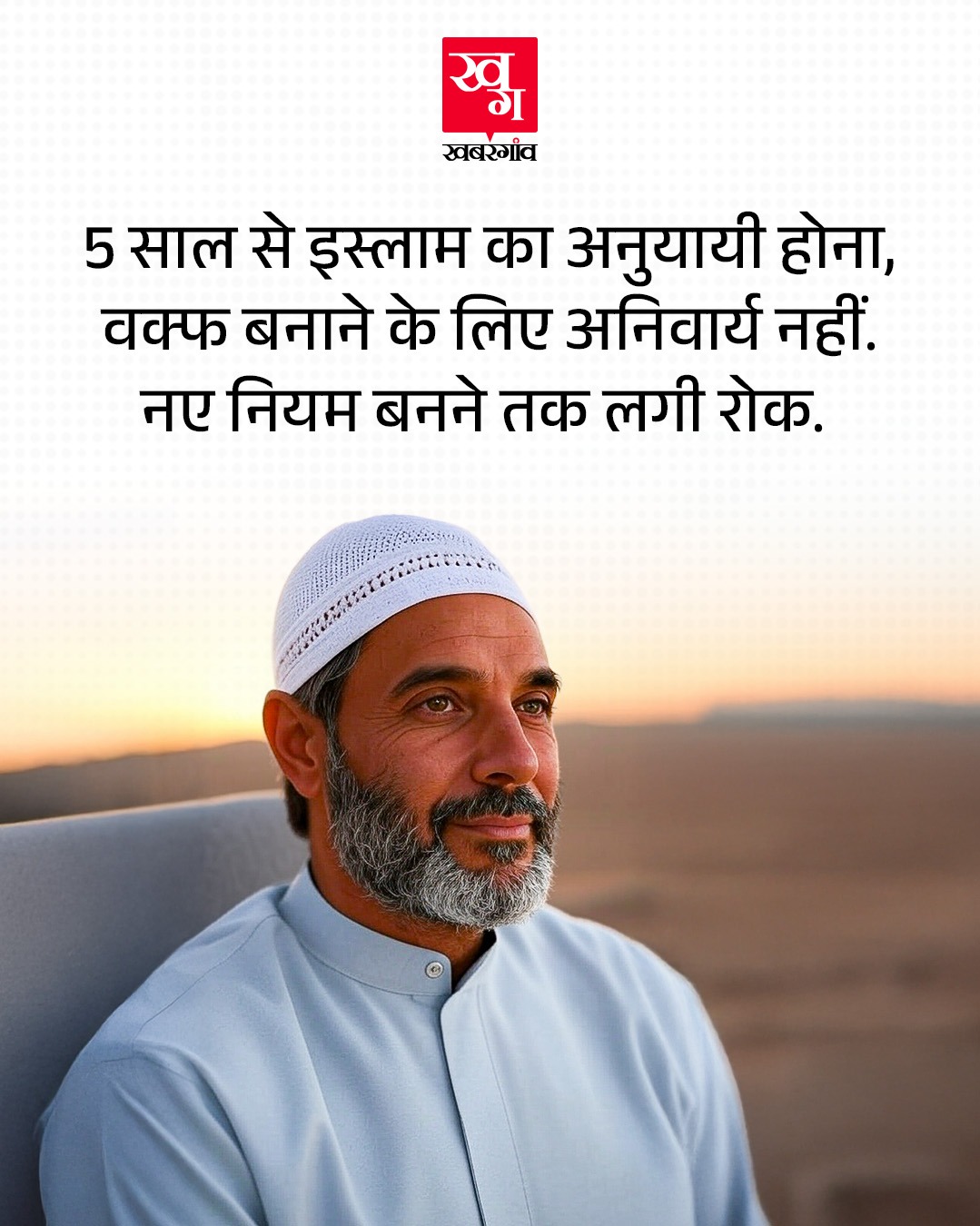 सुप्रीम कोर्ट ने धारा 3 (1) (R) पर रोक लगा दी है। यह धारा वक्फ बनाने के लिए 5 साल तक अनिवार्य तौर पर मुस्लिम धर्म का अनुयायी होने से संबंधित थी। कोर्ट ने तब तक इस पर रोक लगाई है, जब तक कि राज्य सरकारें यह निर्धारित करने के लिए नियम नहीं बना लेतीं कि कोई व्यक्ति 5 वर्षों या उससे अधिक समय से इस्लाम का अनुयायी है या नहीं। सुप्रीम कोर्ट ने कहा है कि ऐसी व्यवस्था के बिना, यह विशेषाधिकार, अधिकारियों को मनमाने तरीके से संवैधानिक ताकत दे देगा।