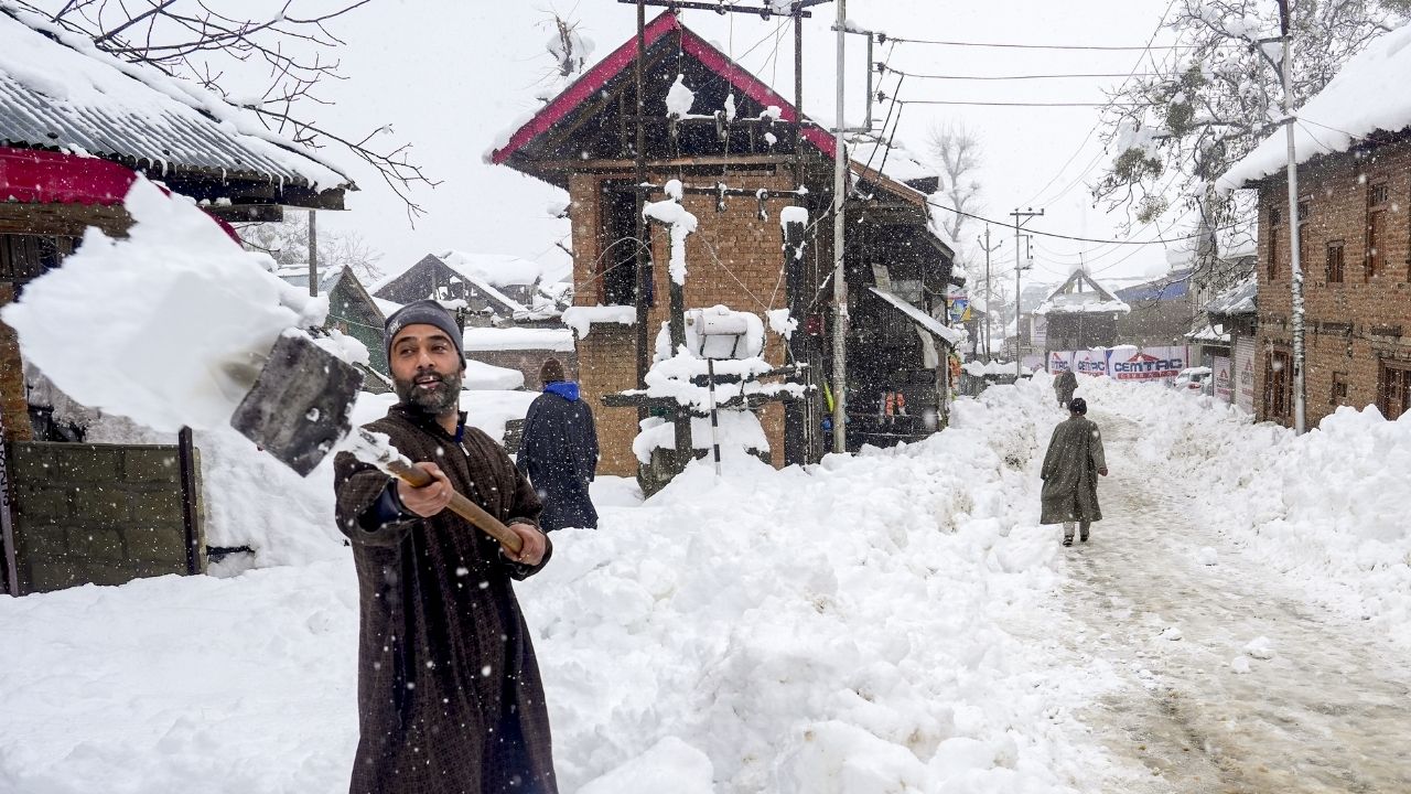 कश्मीर के बड़गाम में भीषण बर्फबारी हुई है। Photo Credit: PTI