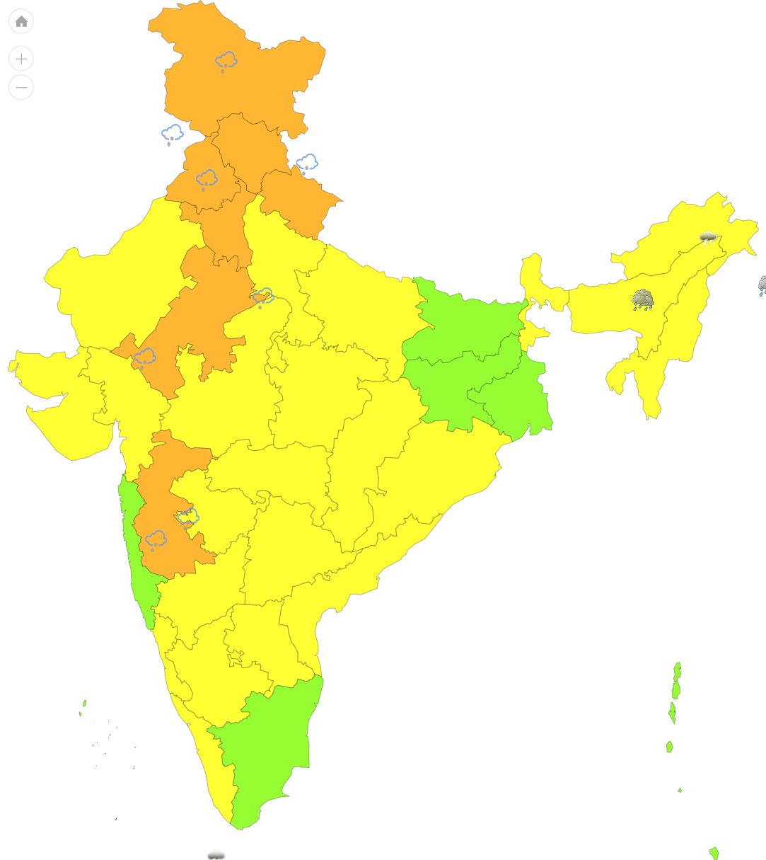 हरियाणा के अंबाला, सोनीपत, गुरुग्राम, कैथल, पानीपत, रेवाड़ी, हिसार, यमुनानगर, महेंद्रगढ़ में और हिमाचल के शिमला, चंबा, कुल्लू, मंडी, शिमला, लाहौल-स्पीति, कांगड़ा, हमीरपुर, मनाली में मध्यम से तेज बारिश का अलर्ट जारी किया गया है।