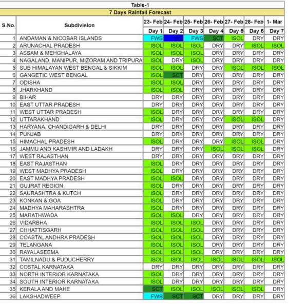 देश के कई राज्यों में ठंड की विदाई शउरू हो गई है और गर्मी का मौसम शुरू हो चुका है। इस बीच कई राज्यों में बारिश का दौर जारी है। तेज हवाओं के साथ हल्की से मध्यम बारिश ने मौसम का मिजाज बदल दिया है। आज 24 फरवरी को भी मौसम विभाग ने कई राज्यों में बारिश का अलर्ट जारी किया है। मौसम विभाग के अनुसार, देश के कुछ राज्यों में घना कोहरा छाए रहने की भी संभावना है। इसके साथ ही 12 राज्यों में आज बारिश होने की संभावना है।
