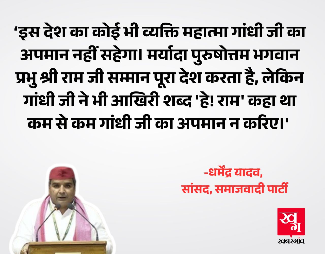 ग्रामीण विकास मंत्री शिवराज सिंह चौहान ने जैसे ही विधेयक पेश किया, सदन ने ध्वनिमत से इस विधेयक को मंजूरी दी। विपक्षी सदस्यों ने विधेयक का विरोध करते हुए कहा कि महात्मा गांधी का नाम हटाया जाना उनका अपमान है। धर्मेंद्र यादव ने कहा कि राम हमारे दिल में बसते हैं, गांधी के अंतिम शब्द राम थे, राम को लेकर सियासत न करें, महात्मा गांधी का अपमान सत्तारूढ़ दल न करे।