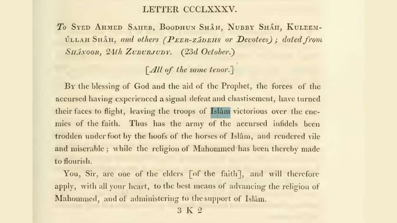 इतिहासकार इरफान हबीब अपनी किताब 'स्टेट एंड डिप्लोमेसी अंडर टीपू सुल्तान' में कई इतिहासकारों के हवाले से टीपू सुल्तान की स्थिति समझाते हैं। उन्होंने लिखा है, 'प्रोफेसर निखिलेश गुहा ने टीपू सुल्तान के राज्य और व्यापारिक नीतियों का विश्लेषण किया। वे कहते हैं कि टीपू ने इस्लाम का सहारा इसलिए लिया ताकि अंग्रेजों के खिलाफ लड़ाई में लोग ज्यादा उत्साह दिखाएं। एक अंग्रेज अधिकारी एडवर्ड मूर ने साल 1794 में लिखा था कि टीपू सुल्तान समझते होंगे कि धर्म के नाम पर उनकी आज्ञाओं का लोग ज्यादा सम्मान करेंगे।'