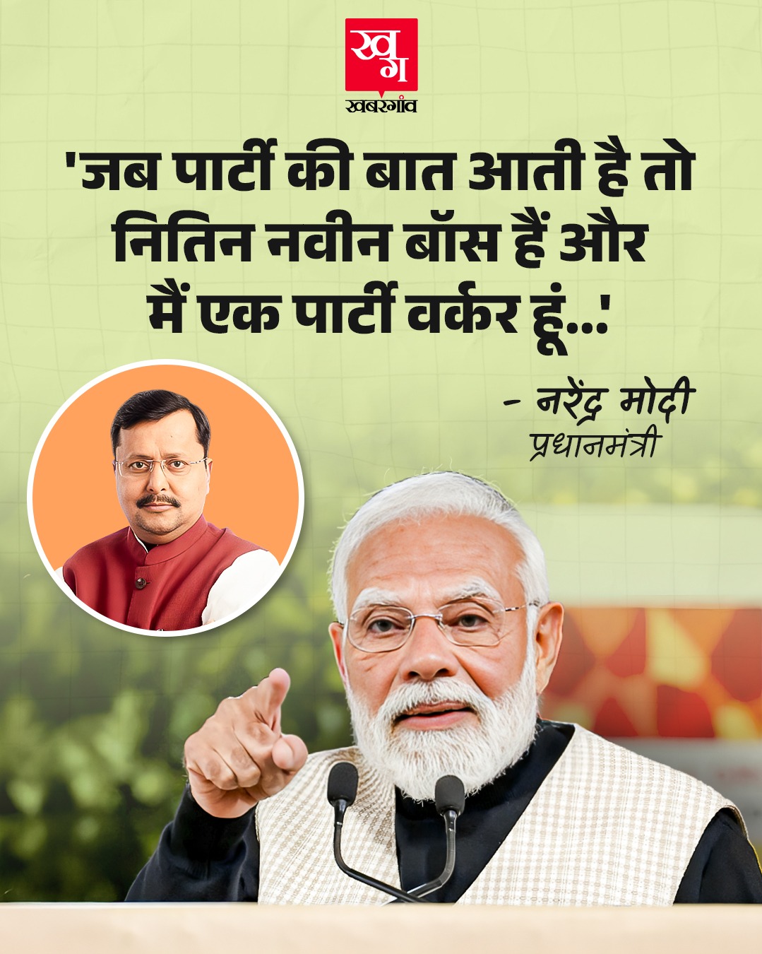 आज बीजेपी का जितना फोकस संगठन के विस्तार पर है, उतनी ही बड़ी प्राथमिकता कार्यकर्ता के निर्माण की भी है। बीजेपी एक ऐसी पार्टी है जहां लोगों को लगता होगा कि नरेंद्र मोदी देश के प्रधानमंत्री हैं, तीसरी बार प्रधानमंत्री बने, 50 साल की छोटी आयु में मुख्यमंत्री बन गए, 25 साल से लगातार सरकार के प्रमुख रहे हैं। यह सब अपनी जगह पर है लेकिन इन सबसे भी बड़ी चीज मेरे जीवन में है कि मैं बीजेपी का कार्यकर्ता हूं। ये सबसे बड़ा गर्व है और जब बात पार्टी के विषयों पर आती है तब नितिन नबीन जी, मैं एक कार्यकर्ता हूं और वे मेरे 'बॉस' हैं।