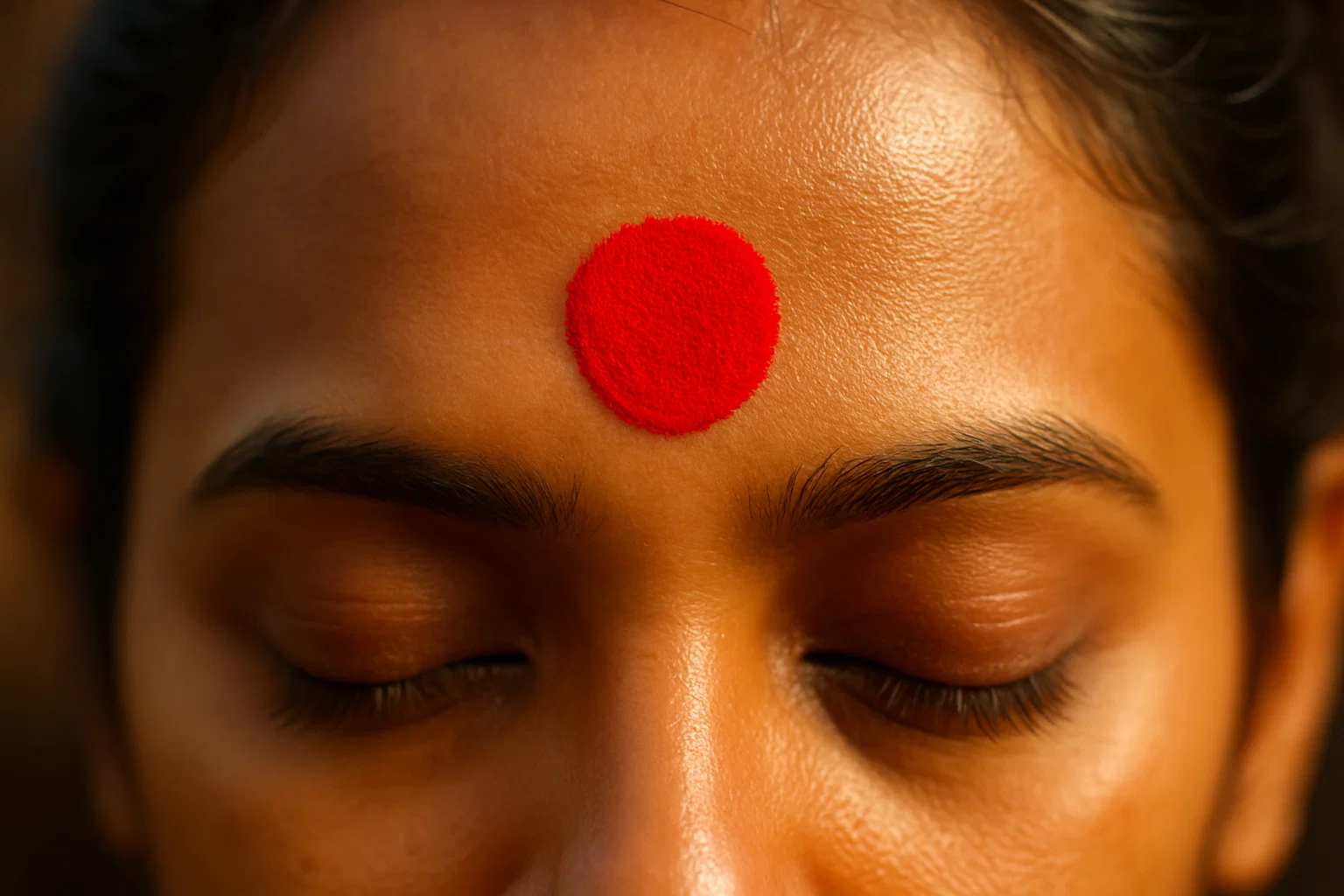 कुमकुम या चंदन का गोल बिंदु (बिंदी/तिलक)