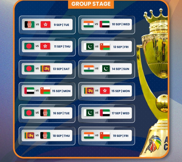 एशिया कप 2025 का शेड्यूल जारी कर दिया गया है। एशियन क्रिकेट काउंसिल (ACC) ने शनिवार (26 जुलाई) को बयान जारी कर बताया कि टूर्नामेंट संयुक्त अरब अमीरात (UAE) में आयोजित होगा और इसकी शुरुआत 9 सितंबर से होगी। वहीं फाइनल मैच 28 सितंबर को खेला जाएगा। भारत और पाकिस्तान को ग्रुप A में रखा गया है। ग्रुप A में भारत-पाक के अलावा संयुक्त अरब अमीरात (UAE) और ओमान है।