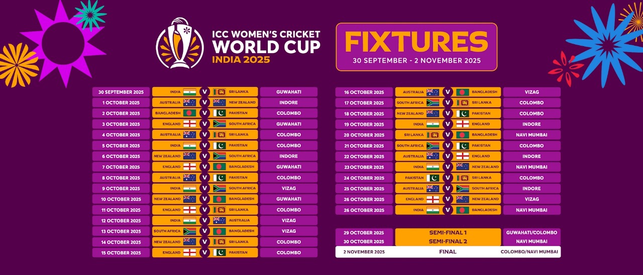 नवी मुंबई के डीवाई पाटिल स्टेडियम में भारत के दो मैच खेले जाएंगे। 23 अक्टूबर को यहां टीम इंडिया की भिड़ंत न्यूजीलैंड से होगी। इसके बाद हरमनप्रीत ब्रिगेड की टक्कर 26 अक्टूबर को बांग्लादेश से होगी। श्रीलंका और बांग्लादेश के बीच कोलंबो में होने वाले मुकाबले को भी नवी मुंबई शिफ्ट कर दिया गया है। अगर पाकिस्तान की टीम नॉकआउट में क्वालिफाई नहीं करती है तो दूसरा सेमीफाइनल और फाइनल नवी मुंबई में ही होगा।