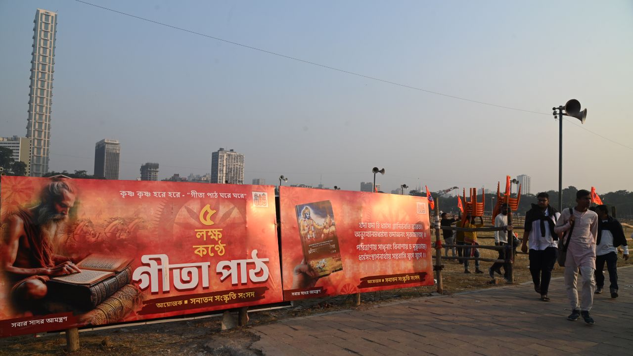 धीरेंद्र शास्त्री ने आगे कहा, 'गीता एकमात्र ऐसा ग्रंथ है, जिसके माध्यम से पूरे विश्व में सामाजिक समरसता एकता और एकत्व का भाव जागृत किया जा सकता है। गीता ग्रंथ महान है, गीता भारत की शान और स्वाभिमान है। जिस घर में गीता होती है, वह घर देवालय से कम नहीं है।' कार्यक्रम में स्वामी प्रदीप्तानंद महाराज और बागेश्वर धाम के धीरेंद्र शास्त्री समेत कई मठों से जुड़े साधु-संत और साध्वियों ने हिस्सा लिया। इसके अलावा केंद्रीय मंत्री और बंगाल बीजेपी अध्यक्ष सुकांत मजूमदार, नेता प्रतिपक्ष सुवेंदु अधिकारी, लॉकेट चटर्जी और बीजेपी विधायक अग्निमित्रा पॉल समेत कई दिग्गज नेता भी पहुंचे।