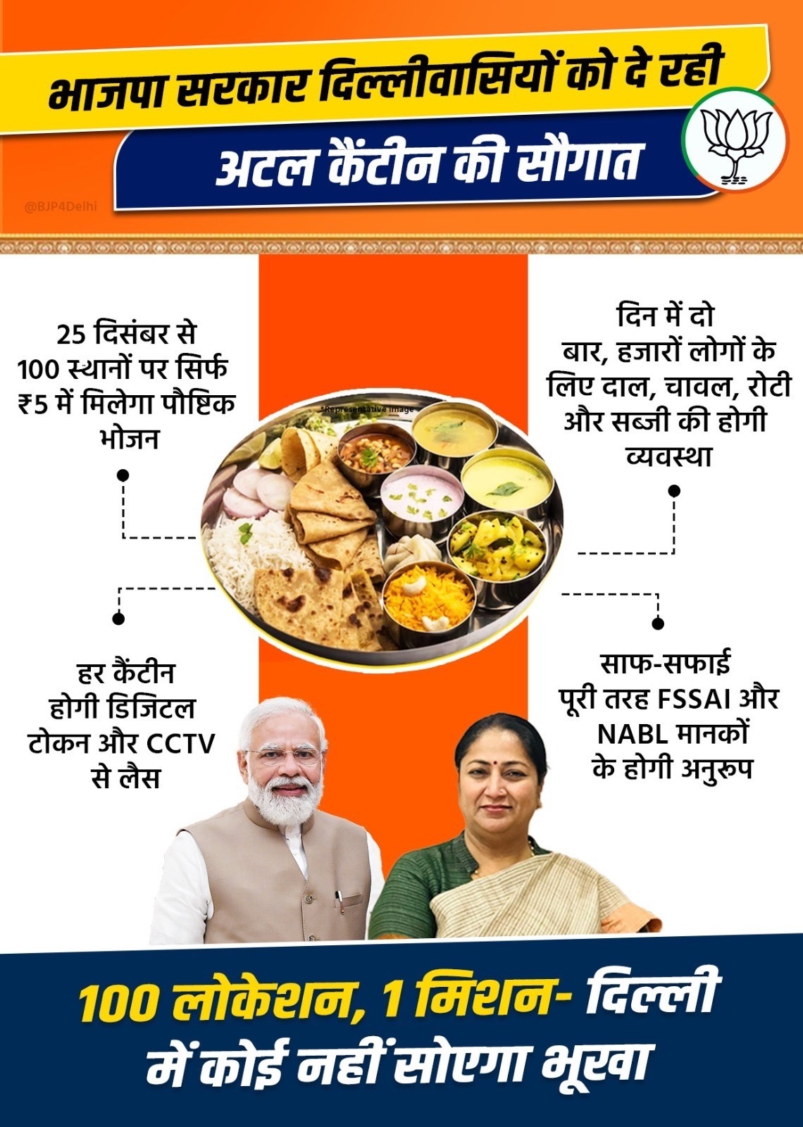 दिल्ली के विधानसभा चुनाव के दौरान बीजेपी ने गरीबों और जरूरतमंदों को सस्ता खाना देने के मकसद से अटल कैंटीन खोलने का वादा किया था।