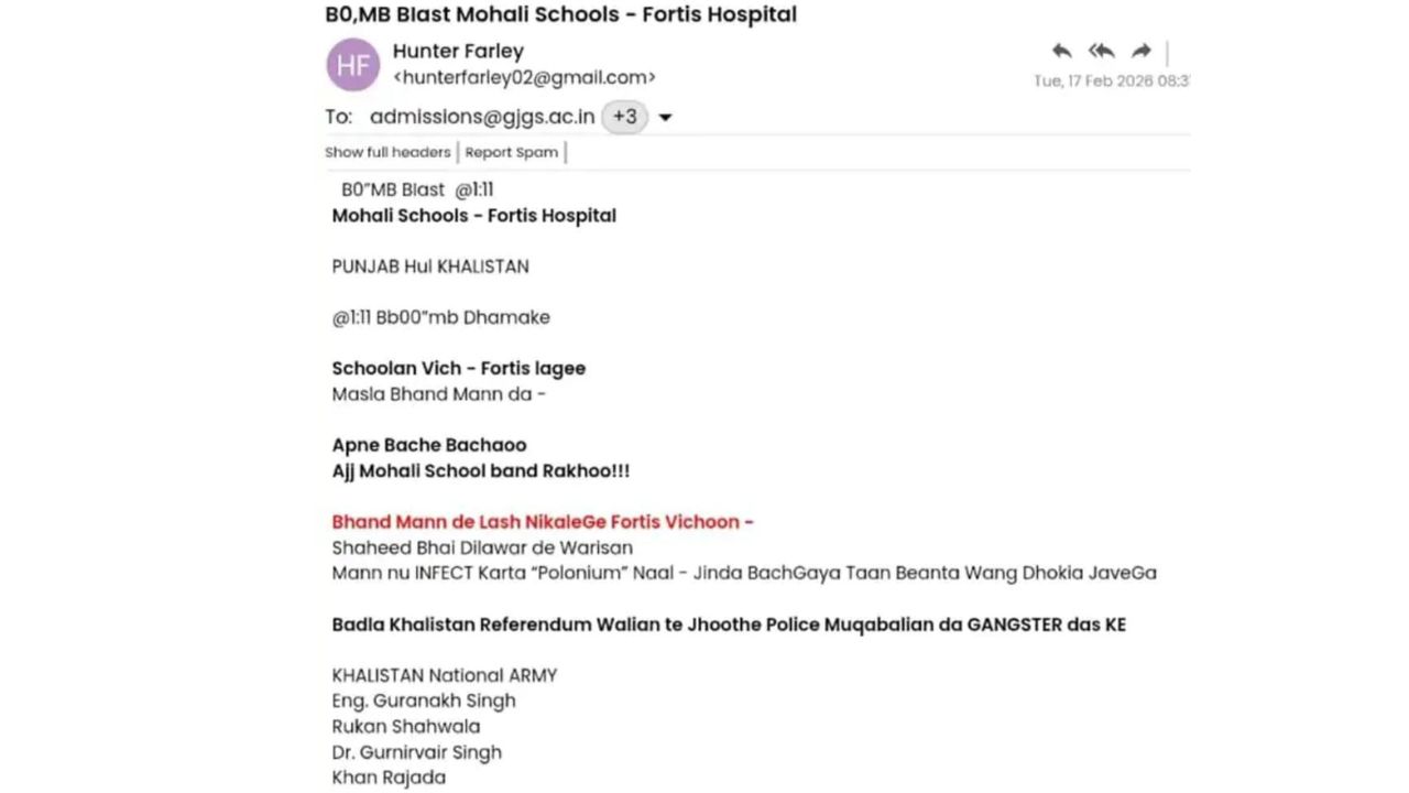 मोहाली के एसपी दिलप्रीत सिंह ने बताया कि इस तरह के ईमेल पहले भी 11 फरवरी को आए थे, जो बाद में फर्जी साबित हुए। इस बार भी पैटर्न एक जैसा है। मंगलवार को करीब 16 स्कूलों को भी ऐसे ही धमकी वाले ईमेल मिले, जिससे वहां भी सर्च ऑपरेशन चले। पुलिस का कहना है कि ऐसे ईमेल ज्यादातर स्पूफ्ड आईपी से भेजे जाते हैं। प