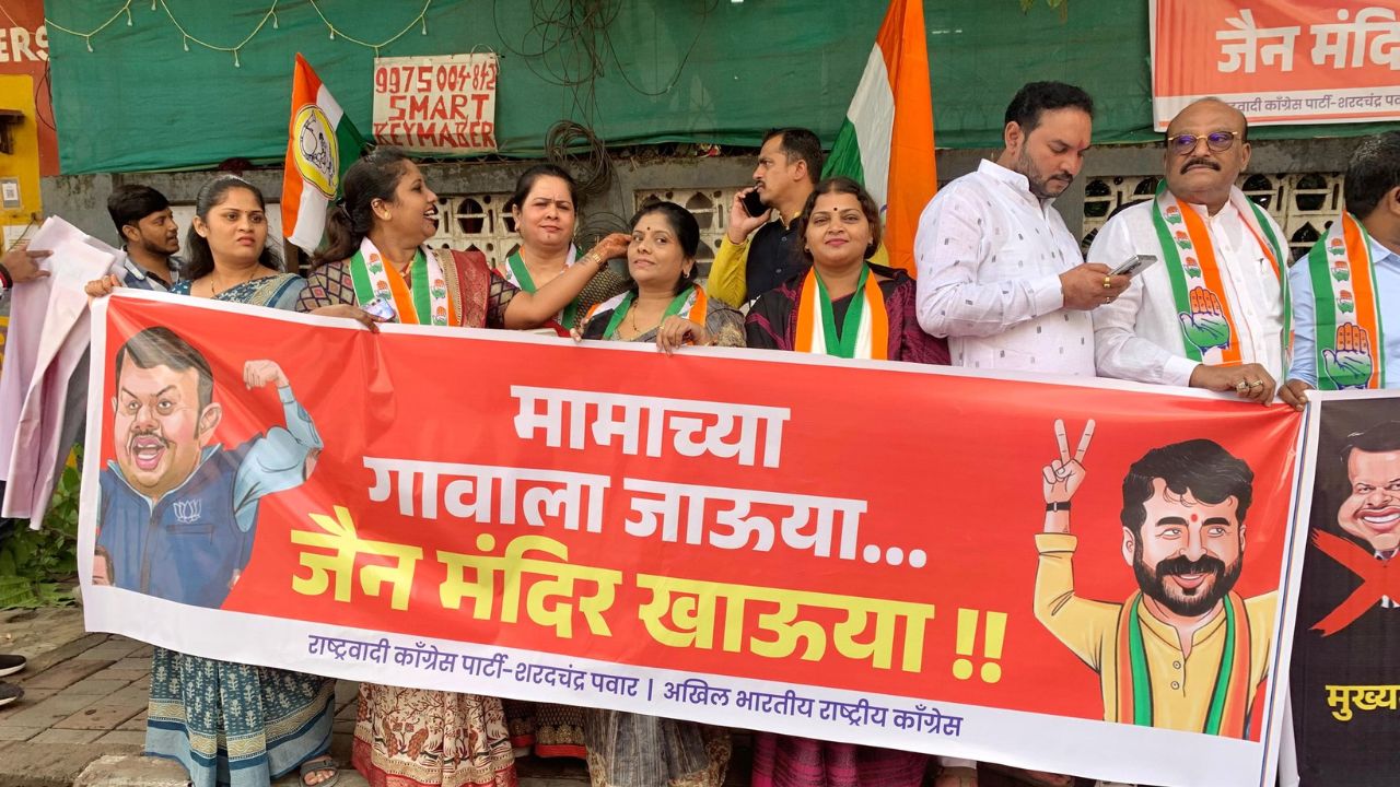 सेठ हीराचंद नेमचंद दिगंबर स्मारक ट्रस्ट के जमीन सौदे के बाद विरोध प्रदर्शन करते लोग। (Photo Credit: PTI)