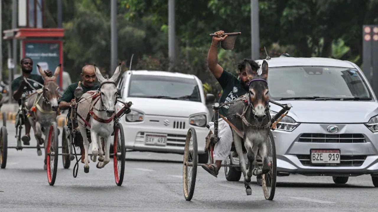 पाकिस्तान के कराची शहर में सिंध प्रांत की सरकार ने गधों की रेस का आयोजन किया था। इस रेस की तस्वीरें भी सोशल मीडिया पर वायरल हो रही हैं। तस्वीरों में देखा जा सकता है कि गधों के कंधों से रिक्शा जैसे पहियों वाली गाड़ियां जुड़ी हुई हैं। हर गधे की गाड़ी पर एक व्यक्ति बैठा है, जो डंडे मारकर गधों को तेजी से सड़कों पर दौड़ा रहा है।