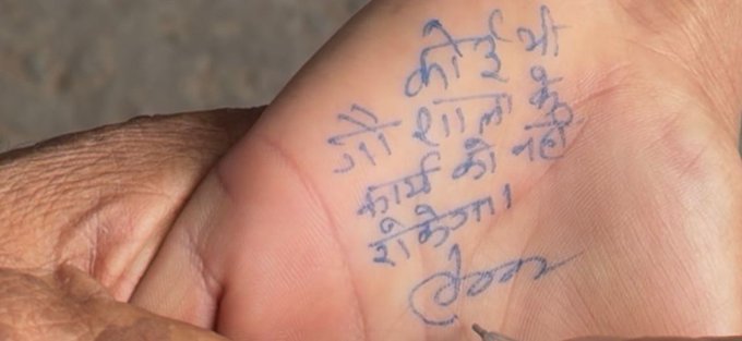 राजस्थान बीजेपी के दिग्गज नेता और कृषि मंत्री डॉ. किरोड़ी लाल मीणा की एक वीडियो सोशल मीडिया पर वायरल हो रही है। इस वीडियो में वह एक महिला के हाथ पर एक अधिकारी के नाम फरमान लिखते हुए दिखाई दे रहे हैं। मंत्री जी का यह अनोखा अंदाज सोशल मीडिया पर चर्चा का विषय बना हुआ है। एक महिला उनके पास गौशाला निर्माण में आ रही रुकावटों की शिकायत लेकर किरोड़ी लाल मीणा के पास पहुंची थी। किरोड़ी लाल मीणा ने महिला की बात सुनकर महिला की हथेली पर ही आदेश लिख दिया।