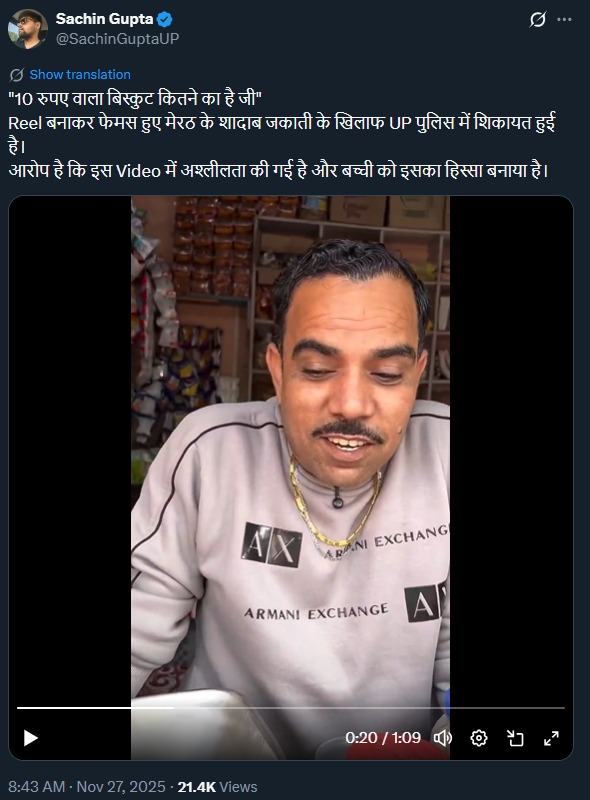 हालांकि, जो शादाब जकाती कुछ महीनों पहले तक '10 रुपये वाला बिस्कुट कितने का है जी?' वाली रील से लोकप्रिय हो रहे थे, अब वही शादाब जकाती अपनी एक रील से मुश्किलों में फंस गए हैं। आरोप लग रहे हैं कि इस रील में उन्होंने अश्लीलता की हदें पार कर दी हैं।