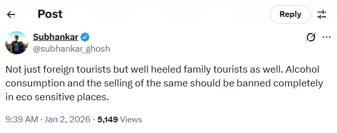 अलग-अलग सोशल मीडिया प्लेटफॉर्म्स पर यह वीडियो वायरल हो रहा है। वीडियो देखकर लोग यही कह रहे हैं कि ऐसे ही लोग माहौल खराब करते हैं। एक एक्स अकाउंट पर इस वीडियो को शेयर करते हुए लिखा, 'यह एक बड़ा कारण है कि विदेशी टूरिस्ट अब भारत में मशहूर जगहों के बजाय शांत जगहों पर जाना पसंद करते हैं। इस तरह के लोगों के व्यवहार के कारण स्थानीय लोगों का व्यवहार भी बदल गया है। वे इस तरह के लोगों से परेशान हैं, जिस कारण अब उनके व्यवहार में भी बदलाव देखा जा सकता है।'